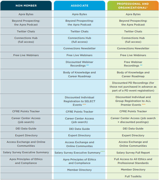 Three distinct membership types offer myriad benefits to those in the prospect research field.